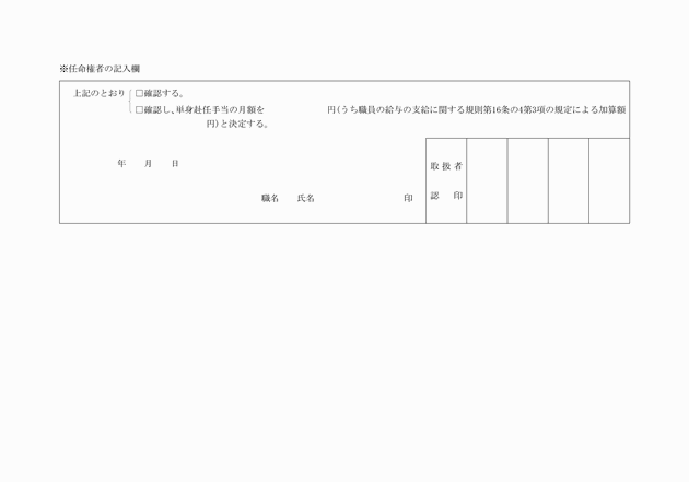 2 任命権者は、前項の規定による届出書の提出を受けたときは、内容を審査して、扶養親族を認定し、その旨を職員に通知するものとする。