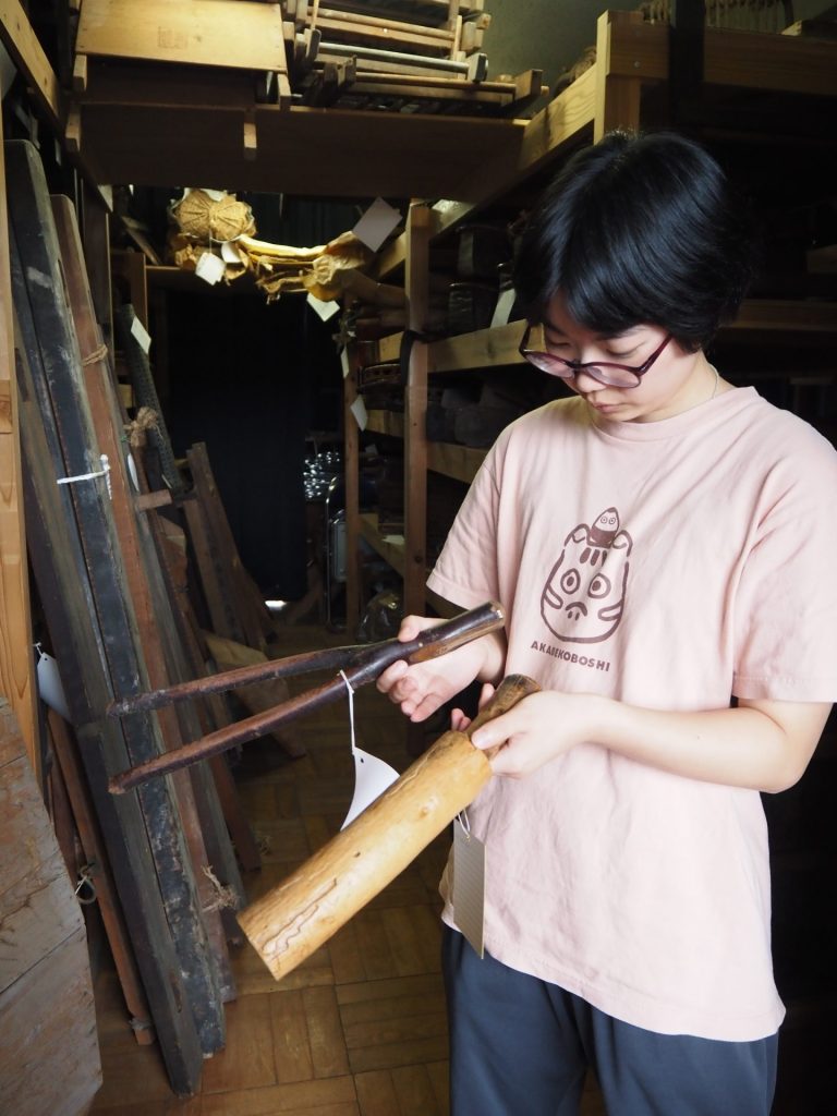 ちょっと前までは、もらってきた民具の掃除をしてカードに記録したり。最近は収蔵品のデータの編集とかをやっています。新型コロナ感染症流行後、民具についての聞き取り調査を行えていないので、「これからまたやりたいね」って、民具整理の先輩とも話しています。